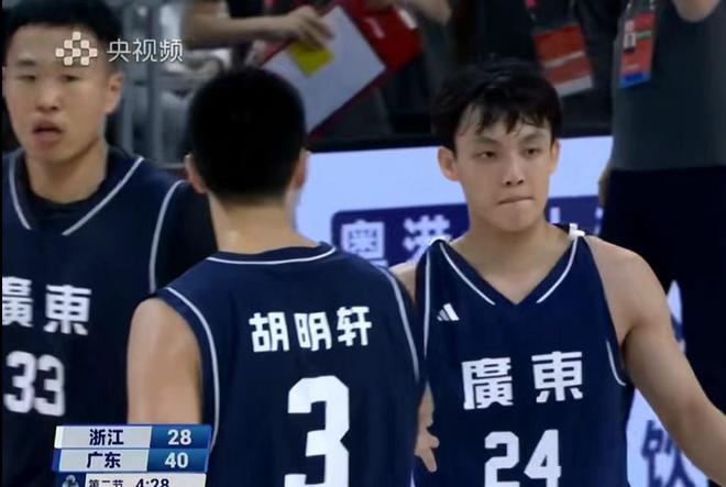 两队次节比赛继续针锋相对,张洪硕三分球命中后篮下跟进暴扣,徐杰三分球回敬,周鹏补篮打成2+1,张嘉许篮下吃饼得手,广东队以27-26领先。沈梓捷篮下暴扣,胡明轩和徐杰连续三分球一箭穿心,刘传兴篮下打成2+1,贺西宁反击得手,广东队打出一波13-2的小高潮将优势扩大到两位数以40-28领先。陆文博和朱俊龙连续三分球止血,程帅澎突破得分,浙江队打出一波8-3缩小分差。刘传兴和徐杰内外开花,王奕博和陆文博连续三分球回敬。赵睿和徐杰里突外投后,半场比赛结束,广东队以53-42领先。