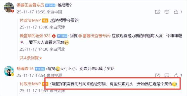 媒体人付政浩老师在与球迷互动时表示,“有些探索需要用时间来验证对错,有些探索则从一开始就注定是个笑话。”