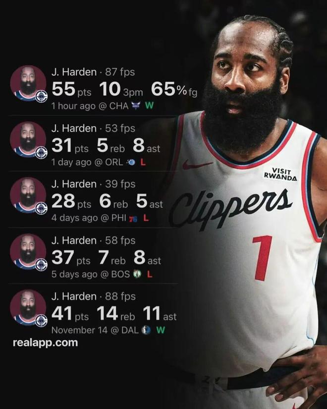 随着小卡连续伤缺十场,哈登苦苦挣扎
