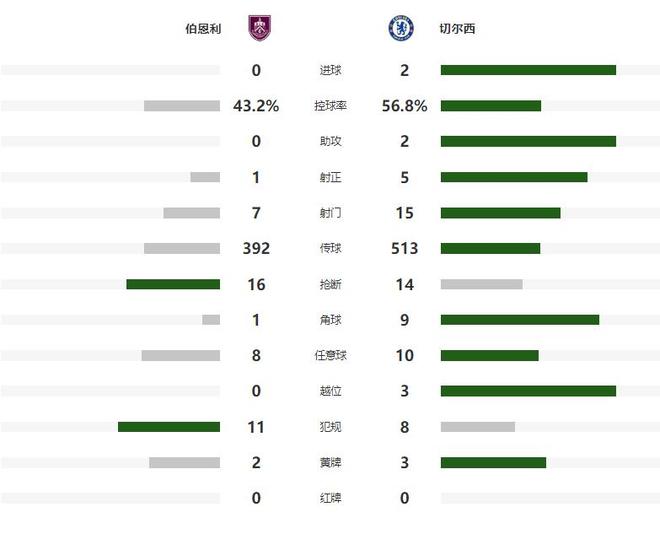 第70分钟,伯恩利完成了开场后最有威胁的一次进攻,弗莱明接到队友中场长传后,禁区内胸部停球打门一气呵成,但临门一脚发挥不佳,直接一脚高射炮,帮助切尔西完成了解围,错失扳平比分的绝佳机会,比赛最后时刻,内托中场一脚直塞,将球交给了吉乌,后者杀到底线后回传,恩佐跟进打门将比分定格为了2-0。