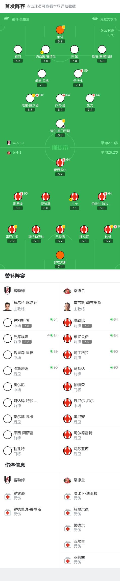 富勒姆1-0桑德兰,劳尔-希门尼斯一击制胜,丘库埃泽送助攻